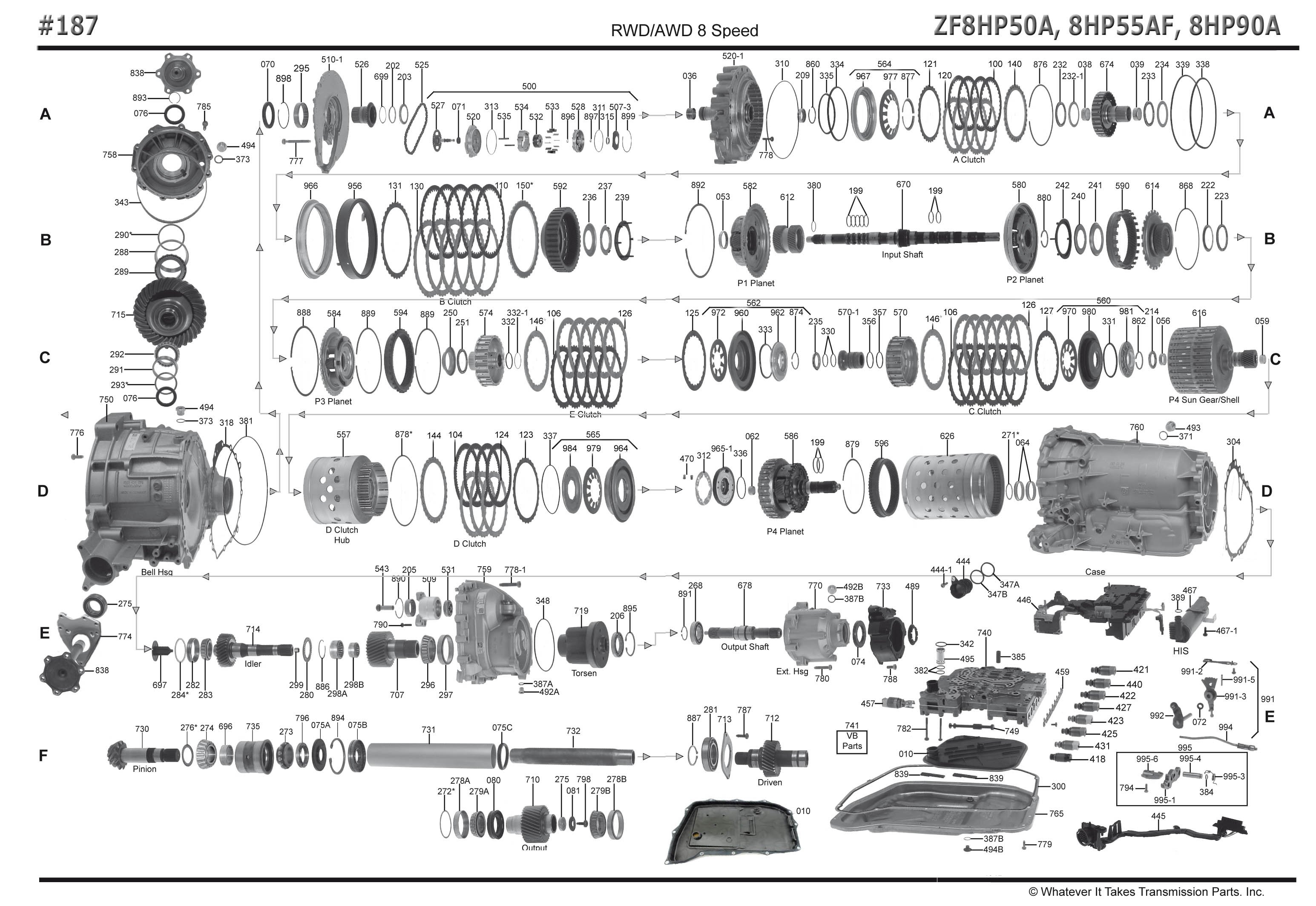 187002A-PR комплект прокладок и сальников zf8hp55af (8 speed-awd), 2009-13, (ремкомплект/ оверол кит/ overhaul kit) пресижн (неоригинал сша)